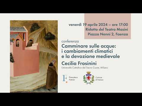 Video integrale della conferenza tenuta da Cecilia Frosinini - dell’Università Cattolica del Sacro Cuore, Milano - al Ridotto del Teatro Masini di Faenza il 19 aprile 2024, dal titolo “Camminare sulle acque: i cambiamenti climatici e la devozione medievale”. Durante il Medioevo, le calamità naturali in molti casi cambiarono non solo la vita delle campagne e delle città , ma anche le reazioni della popolazione, che si sentiva vulnerabile di fronte a questi eventi. In quei secoli lontani, permeati da una religiosità diffusa ad ogni ambito, vennero perciò create o enfatizzate storie legate alla vita dei santi, che davano la speranza di una protezione e di un superamento dei disastri climatici. Erano storie che incoraggiavano i fedeli a trovare soluzioni: in genere, la ricerca di luoghi più sicuri dove vivere o di attività che migliorassero le condizioni di vita, specialmente nelle zone rurali. Anche la storia di santa Umiltà da Faenza, che attraversò incolume il Lamone, nasce in questo contesto, quando si sviluppa la devozione per i santi legati a fiumi, specie nelle regioni fortemente legate al recupero di terreni alluvionali, o attraversate da percorsi verso centri di maggiore ricchezza commerciale, o ancora nelle città dove scorrevano fiumi dal corso impetuoso e imprevedibile.